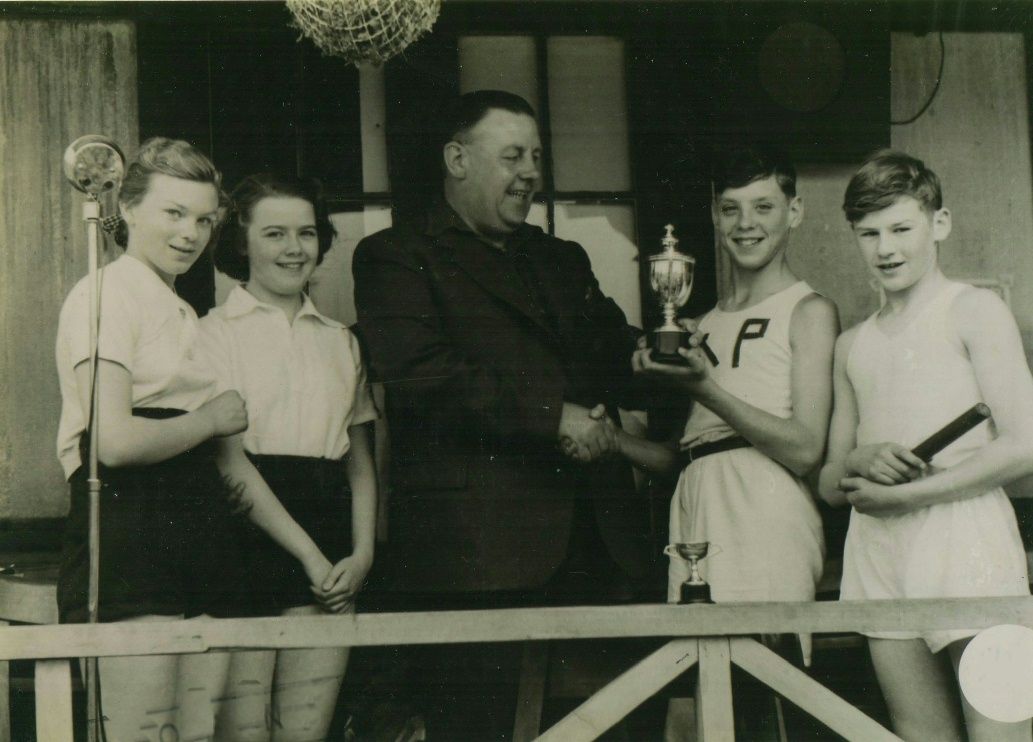 Inter-Schools mixed relay 1953, Cartwright Trophy, June Frisby, Elizabeth Brassington, ?,?, Peter Spooner