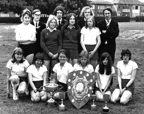 Members of Manor Park GS Athletics Team 1971 triumphant in just about every category in Nuneaton Schools Athletics in 1971