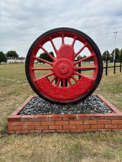 During the early stages of the demolition of the science block in November 2024, the locomotive wheel which had stood in two or three locations outside "the extensions", since, at least 1963, was removed by Manor Park Rugby Club to their home ground at Griff & Coton Sports Club, where it has been sand-blasted, painted in club colours and is displayed on its own plinth. Manor Park Rugby Club has its origins in Manor Park Old Boys RFC formed in 1958. With the closure of the grammar school the "Old Boys" was dropped from the title, but the club retains the wheel from the school badge in its own badge and the red and black team colours. [Photographs Alan Merry and Nik Gajic] More at https://www.pitchero.com/clubs/manorpark/a/history-7770.html If anyone knows where the locomotive wheel came from or exactly when in was installed at the school, please do get in touch.